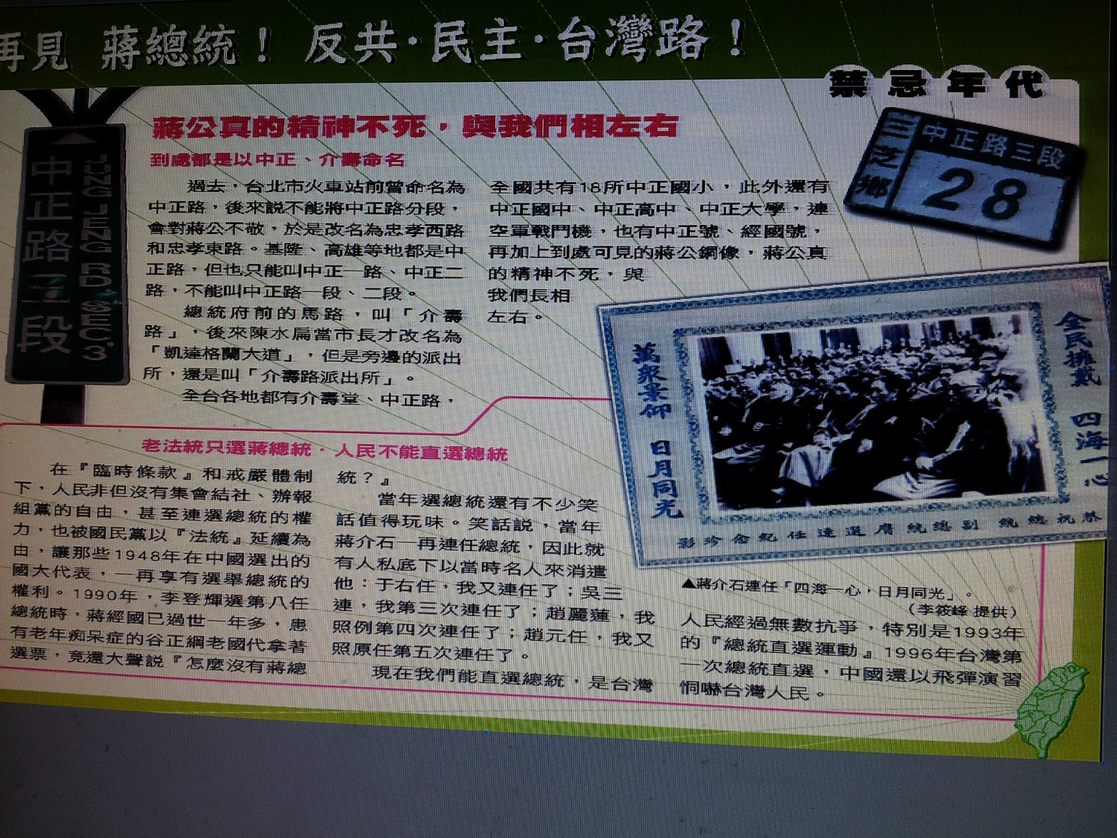 派出所」。全台各地都有介壽堂、中正路,